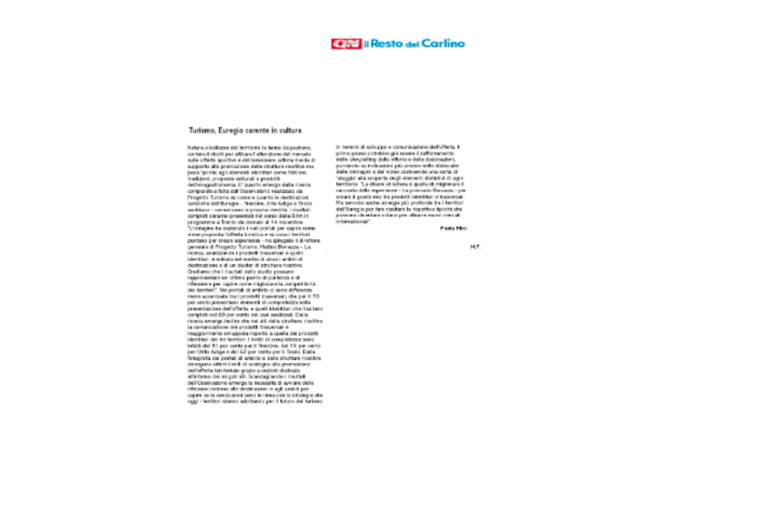 “Per la prima volta si è deciso di realizzare un Osservatorio che andrà a considerare tre grandi ambiti turistici: il Trentino, l’Alto Adige e il Tirolo – spiega il nostro direttore generale di Progetto Turismo, Matteo Bonazza -. L’obiettivo è capire come si propone l’offerta e su quali argomenti viene posto l’accento. Da un lato ci sono dei temi e dei prodotti trasversali come ad esempio la vela, il kajak, la pesca, gli sport invernali, il bike e molti altri. Sono prodotti molto importanti per queste destinazioni che chiamiamo trasversali perché in realtà possono trovare applicazione in vari ambiti territoriali. Dall’altro lato abbiamo invece dei prodotti che potremmo definire identitari perché connotano il territorio: pensiamo alla cultura, la tradizione, il folklore così come il paesaggio e altre testimonianze che sono proprie di quel luogo. Quando funzionano le cose? Quando si riesce a creare delle esperienze in grado di mixare queste due tipologie di ‘ingredienti’”.